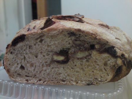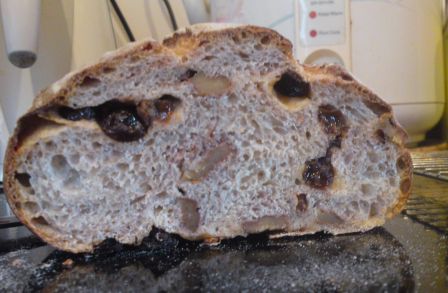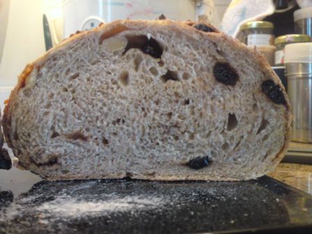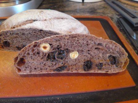 I used only 2 slightly heaped tsps of cocoa ( I think it was abt 4 grms) as the total flour amt used was only 220 grms. After coating the sticky prunes I just mixed the excees in the flour. I followed Codruta's recipe where no sugar was added and I was afraid that it may turn out too bitter if I added too much or it may affect the consistency of the flour, I'd hate to end up with a sticky mass of dark chocolaty dough that I couldn't handle. (I had some bad experience with rye and wet raisins and had to chuck everything eventually.) I would like to try your recipe too but as I don't have a sourdough starter @75% or any sourdough for that matter, (I'm still trying cultivate a sourdough starter and reading a lot of articles on this subj) I was unable to follow your recipe although I did like the idea of adding a bit of honey/maple syrup and milk powder for a richer flavour. I will try and incorporate these two ingredients into Codruta's recipe the next time and see if this works as well. The dough did not have much oven spring in the oven, I think I may have overproofed the dough but the crumb is still quite soft. It goes well with plain butter. I think I like the taste of prunes better than raisins.