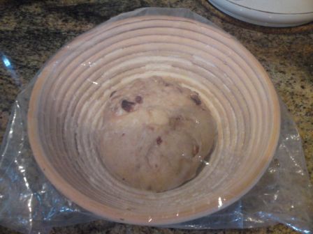 Maybe I should have waited until bulk fermentation is completed before adding raisins and walnuts. I'm leaving it to proof at room temp @ 27C until tomorrow moring.