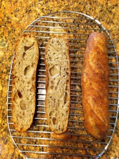 I mixed this batard last night and let it retard in the fridge overnight, brought it out and shaped it and let it proof and let it rise for several hours and then baked. I used the type of levain that I described...I already posted it in a blog entry but here it is for you. The bread was/ is delish.