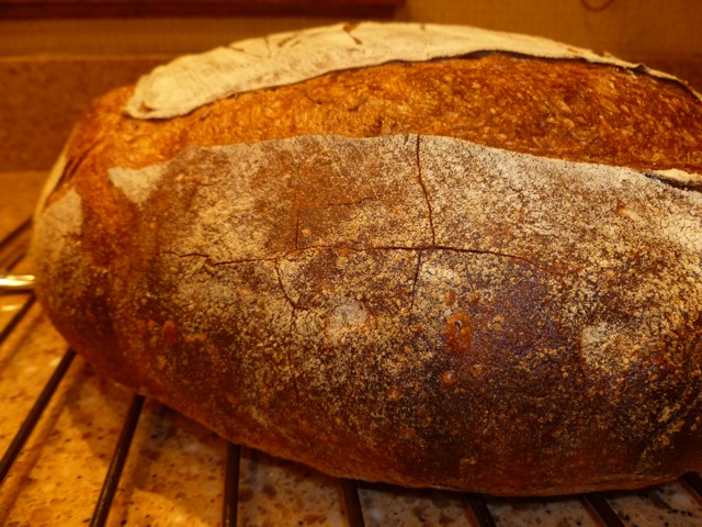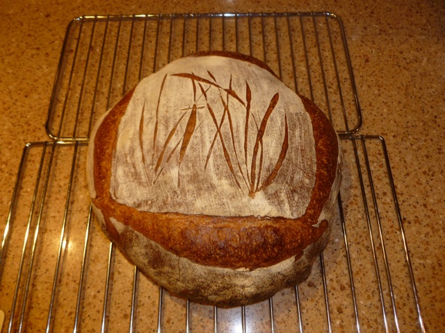 Your miche is beautiful! I can see it must be big (two cooling racks to support it!)