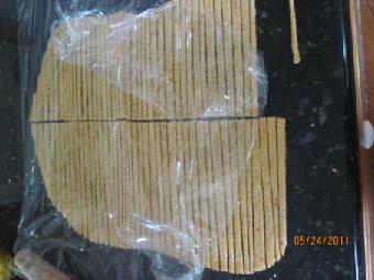 So I cut it into cracker -shape.  I also tried to make a stick .. but it was really hard.. because the big walnut doesn't stay in the dough nicely..