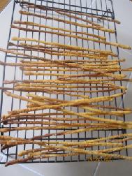 Tomato pretzel with tomato yeast water and the thin pocky and crackers.