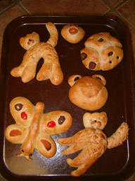 At this point I started looking on the internet for ideas.  I found the book Kids' Ideas with frozen dough by Rhodes.  I made several of their designs and learned some new techniques.