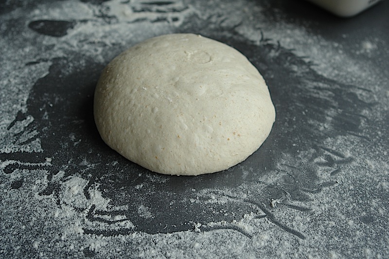 For each piece of dough, place it in front of you on an un-floured board.