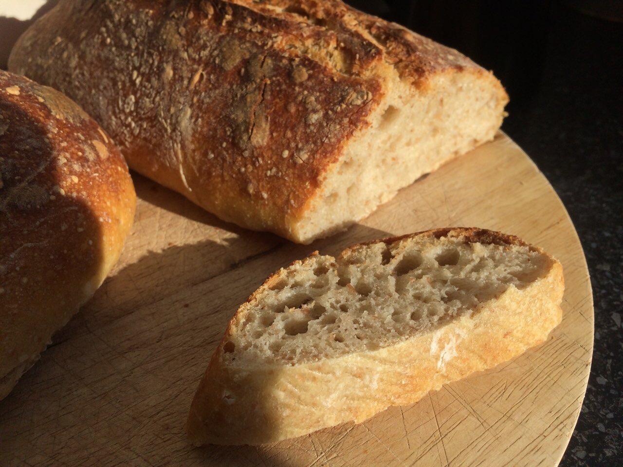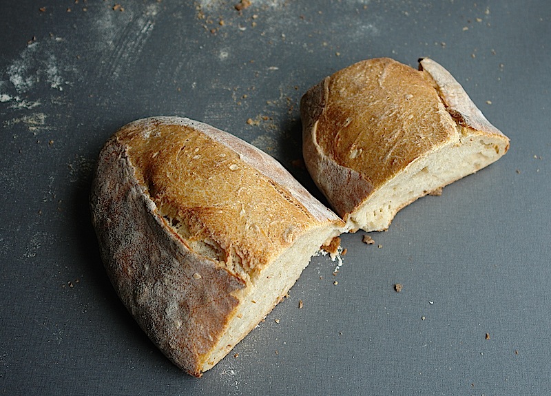When the loaves are done, turn off the oven but leave the loaves on the baking stone with the oven door ajar for another 7 minutes to dry the crust.