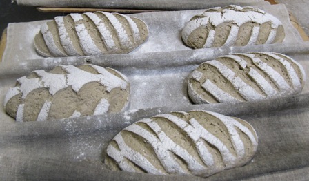 Our instructor, Mac McConnell, mentioned that the rye dough is fragile, and can collapse at the end of proofing if you score it then.