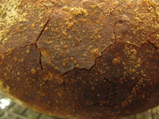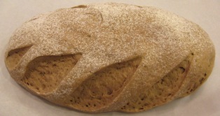 Here is the bread, baked from the mix. It looked like the mix had a good amount of rye in it, and some bread spice (brotgewurze). I tried scoring before proofing, as we were taught in my recent Guild class.