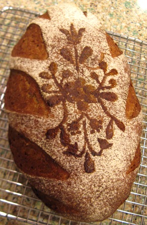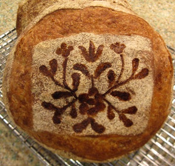 I agree with Janet on the stenciling - I think I would need genetic alterations to be able to tackle that - but that scoring pattern is definitely something I would like to try. Oh and by the way, you are a painter. You have just found your medium in bread. -Varda