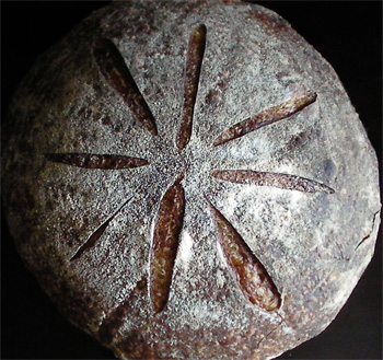 You're welcome, Varda. Drape a scarf and photograph some shattered shards on the cutting board. Now that's an idea. :) That's one of my standard scoring patterns but with so many slashes you have to make sure that it is slightly under proved otherwise they won't all open. See above pic.
