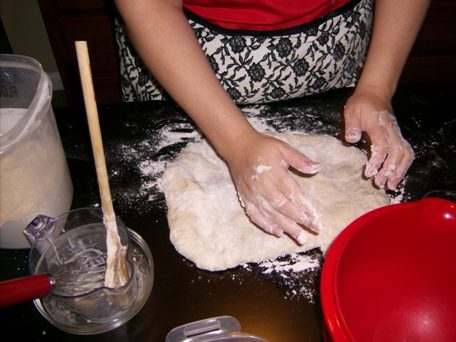 After adding the flour, using the maximum of the six cups stated in the recipe, I had turned to kneading. I remember thinking that although the dough was a bit sticky and difficult to shape, it did feel right by the end.