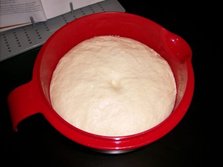 Once I coated it (using olive oil), I of course put it in a bowl to rise and covered it with plastic wrap. Normally, I use a damp towel to raise my dough, but I deferred to Hensperger's expertise. I found the rising to be very successful.