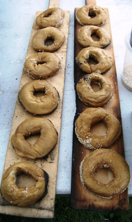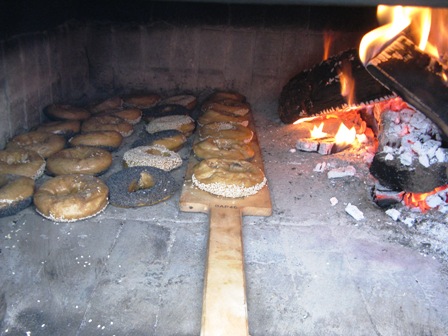 Wood-firing bagels (note the charred bagel board!)