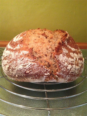 The dough, although quite a hassle to mix, does make a wonderful Rye bread, with a flax seed crunch and a pleasent soury note. My elder family members loved this bread. It is wonderful with cream cheese, or pastrami.
