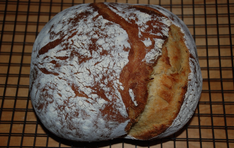 On a different note, I have been thinking about self-scored breads since seeing several beautiful examples on this site. I proofed this one with seam up, and noticed it opening in interesting ways. So I managed to get it seam side up onto the peel (not that easy) and didn't score. It came out a bit funky to say the least, but I'm sure I'll be posting more on this later.