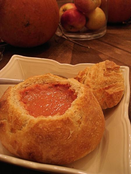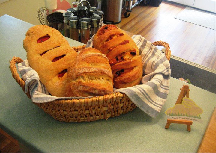 Roasted Pepper Fougasse, Vermont Cheddar, Olive and Parmesan.White BouleCheddar Bread Bowls with Tomato Basil SoupToasted Pumpkin Seed and Cranberry Pumpkin Oatmeal Bread Log in or register to post comments That Boule looks amazing! I wish I could reach through the screen and rip off a chunk right now! Log in or register to post comments Thank you so much! Log in or register to post comments Bagels- first try! Log in or register to post comments
