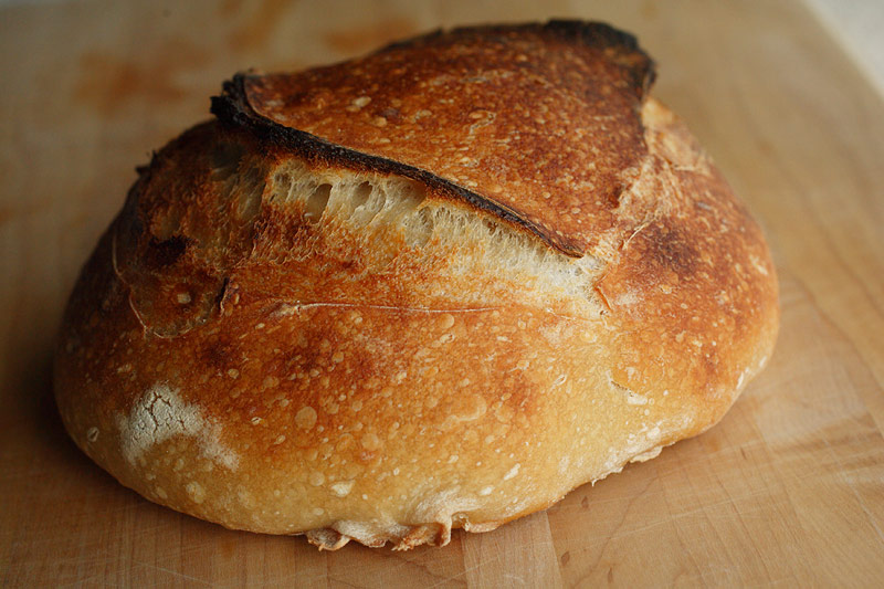 I made this modeling the Tartine Bread book recipe. My starter was just over a week old. I had fun, and it tasted great to me. In the book he talks about eating it fresh out of the oven and frying it with olive oil. So, I couldn't resist frying it in butter and olive oil. My wife and I couldn't get enough of it.