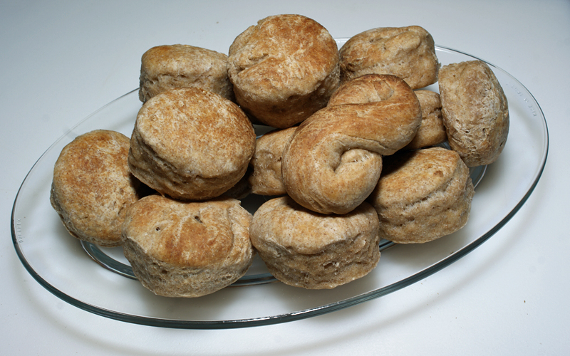 As usual, I after mixing the dough, and refreshing my seed starter I still had levain left over. I mixed the two together, fed the mix 1:3:3 with a 50/50 mix of Bread and Whole Wheat flours, and popped it into the refrigerator overnight. This morning, while I worked the bread baking, I let the leftover levain come to room temperature, and work another three hours. While the bread loaves were proofing I made a 50% Whole Wheat version of my Sourdough Biscuits ala Cookie (see http://weightloss-slim.fit/node/21536/sourdough-biscuits-trying-real-thing%3C/a%3E and http://weightloss-slim.fit/node/21967/sourdough-biscuits-trying-real-thing-take-2%3C/a%3E ).