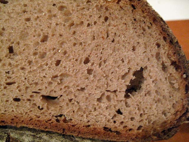 This is a delicious bread with a mild to moderate sourdough tang and earthy rye flavor. The crumb is tender and moist, but not at all gummy. It's my idea of a delicious high-percentage rye bread. It will be perfect for tomorrow's breakfast with cold-smoked salmon and for dinner with split pea soup.