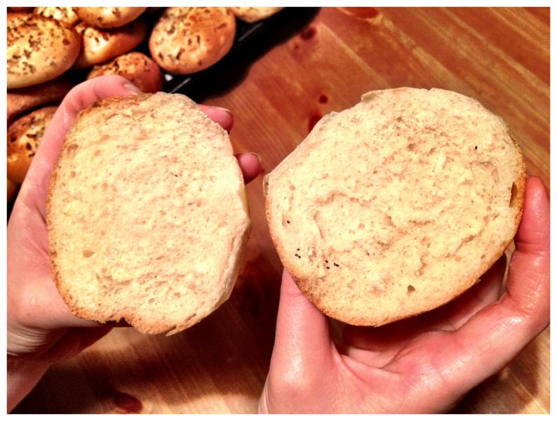 One question I have, is that although I imagined these we going to be more bagel-like in terms of density, they actually ended up quite light and fluffy (I'm always startled at how much white flour bread rises). I don't know if that's the correct consistency, but I'll post some pics once I've figured out how. but here are some pics of the results: