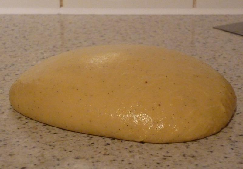 Mixed the first dough with flour until smooth before adding the rest of the ingredients including seeds from half a vanilla pod. Again I never mixed above minimum speed!