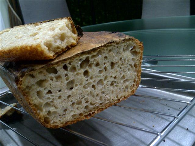My Original Loaves - which I can never shape into a boule as the shape would never hold so I had to resort to baking in a loaf pan. Texture was always gummy and rise was minimal although taste was great!