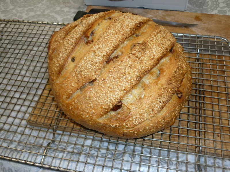 Last week 's bake was a single loaf sourdough with hazel and walnuts