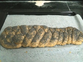 However, i managed to transfer the gloppy braid to a parchment lined sheet, and baked it at the right time (I had to load it to the oven sooner, as higher hydration means faster fermentation).