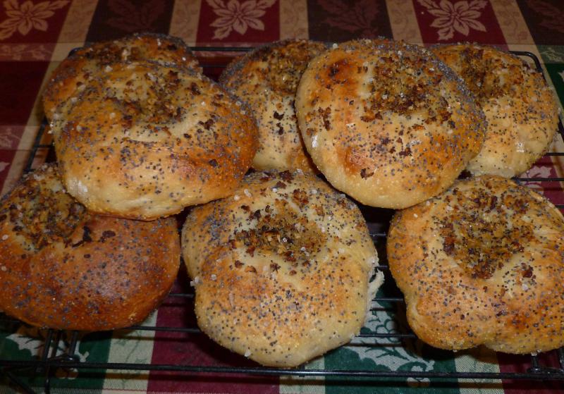Hi, I've made onion rolls from Norm's recipe on here and was wondering if anyone uses an egg wash before baking? I have been and not sure where I got it from. I make 1/2 a batch, or 16oz flour not the full 32 oz and I know that it needs about 1/2 an egg added and I used the other 1/2 mixed with some water for the wash. This helps in browning and holds the seeds on. Today I was looking over the recipes on here and don't see this about egg wash and it's been a while. Maybe it could be from the Kaiser roll recipe ???? I'm glad as I got the knack of uploading my pics now so I did edit this to show you.
