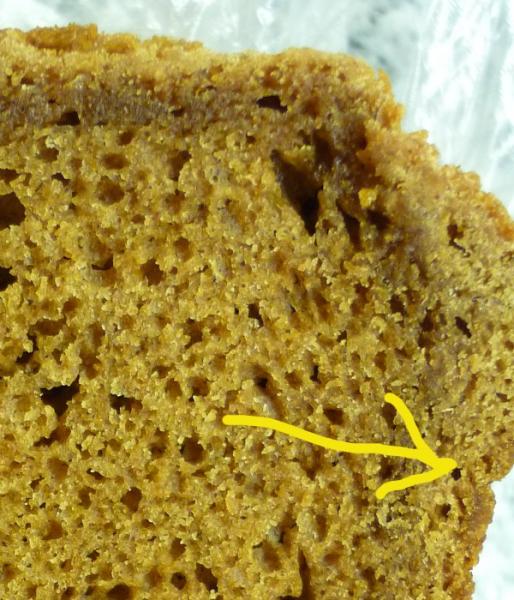 This is Take II because I actually baked this formula twice this week. The first time I used dark rye instead of white rye flour by mistake. The second time I got the flour right, but I may have done something else wrong. Both bakes are very tasty. Almost addictive to a giant sweet tooth like myself. Even though I baked it for what seemed like forever though, it still came out not quite done. Or, it came out something else I don't recognize. Here is the picture that explains it.