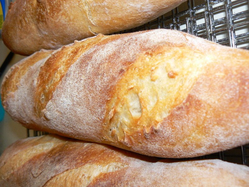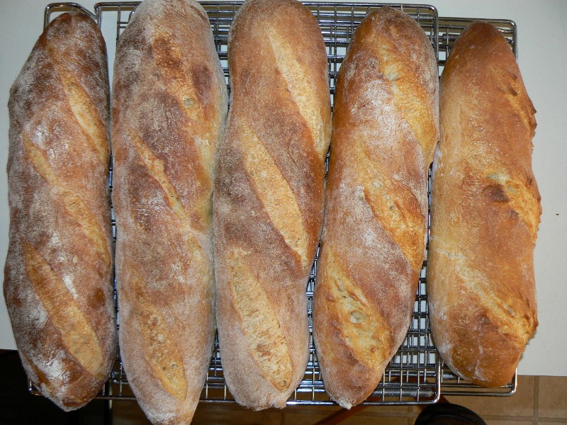 This is the second time I have made these. I am learning a lot in the process. These came out "decent." I need to make the cuts deeper and somehow get more steam in the oven. Tartine's Baguettes are roughly a 65%** the hydration dough that uses both a levain and a poolish.