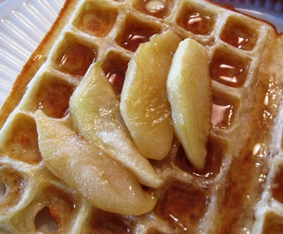 I get all misty about waffles around the Solstice because my father really loves them. My mother can’t make them (that talent skipped a generation) and the only time he gets them is when I make the journey halfway across the continent to make them for him – usually at this time of year. Unfortunately, the little hobby that supports my household and what seems to be an ever growing assortment of hangers on sometimes has its extraordinary demands and I will not be making waffles on the East Coast until sometime in 2012.