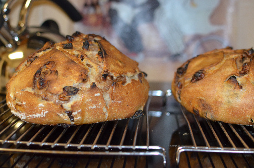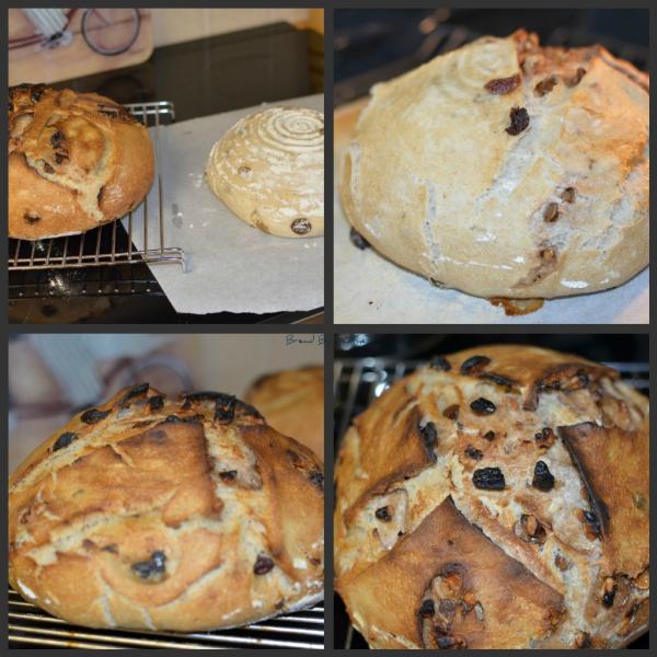 I bulk fermented overnight ( 2 stretch and pulls) pulled it out this morning let sit for an hour and then shaped. I added my walnuts this morning before shaping. It's proofing as I type. The dough seems a bit dryer maybe. Wondering if I should have added a touch more liquid but thought that the soaked raisins would help out a bit?  It was tearing a bit around the rasisns while shaping. The smell is wonderful. I'm feeling skeptical...