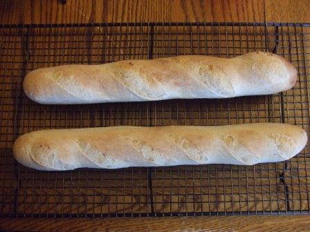 I got a baguette pan for Christmas so I decided to try it out. I used Peter Reinhart's recipe and the bread tasted great. As you can see from the picture the crumb is not very open, so I made another batch using sourdough starter and a small percentage of whole wheat. That batch was more of an open crumb but not what I had expected. This is my first try, so I am pretty happy with the results, but am open to any suggestions.