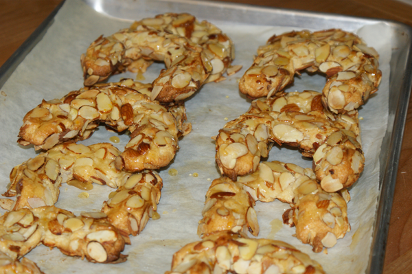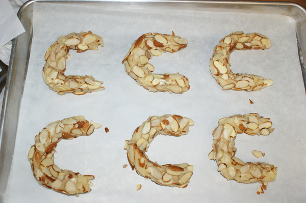 I'm not dead, it just feels that way. I spent the holidays either travelling or cooking for New Year's, so didn't get around to the challenge until 2012. I made a fatal error, as well, relying on memory instead of looking at the schedule. Thus, we have Almond Horns instead of Almond Buns.