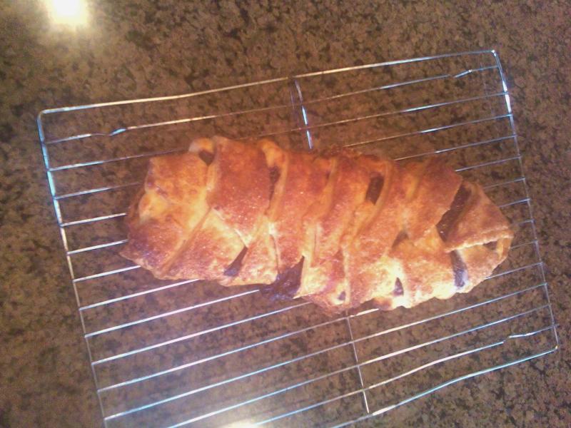 My first attempt at making SD using S&F, long retard and David's parchment paper technique. The only change I made was using 50 g of home ground WW berries instead of the rye that David used. No rye to be found anywhere. I also used a WW, and AP flour build for the levain. I'm not sure what David's was but I am guessing he had some rye in it. I was very happy with the results. Nice exterior crust, great open crumb and fine taste. It was better the next day too. I liked it with oiive oil, fresh basil, pecorino, parm and pepper. On Davids's blog you see my ordeal trying to bake the San Joaquin. He said my saga proves his recipe is bullet proof :-) It is bullet proof too! There is also a photo of my second recipe of my home made Puff Paste Blueberry Cream Cheese Braid inspired by the one on TFL with bread instead of puff paste. What a great site for bakers like me!!!