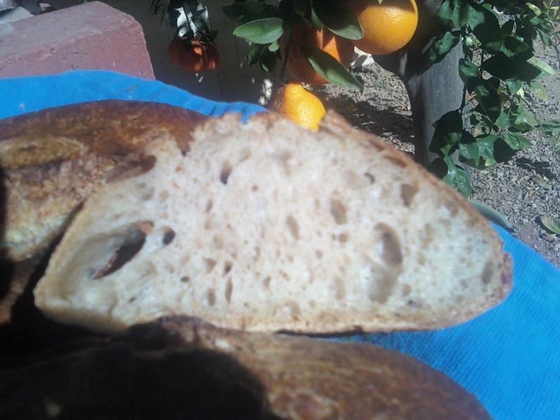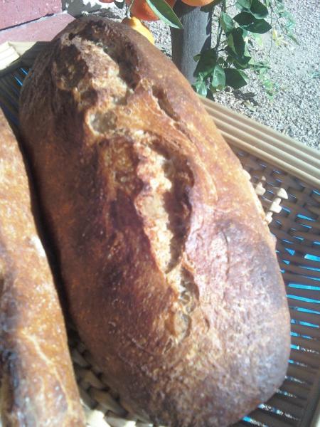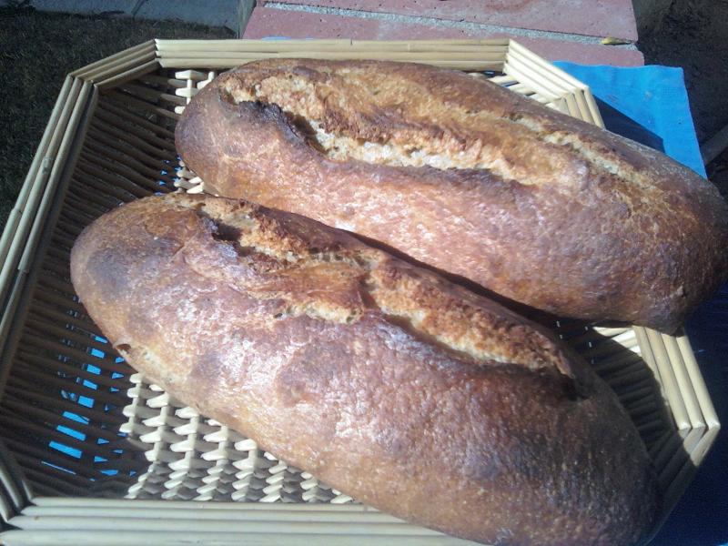 The changes include home grinding whole rye berrys and adding 25 grams more to make 75 total, adding 50 gramsof home ground whole spelt berries and deducting 75 grams of bread flour to keep everything in balance. I also lightly slit the loaves before they went into the bag for final rise to try to get them to rustically split on top.