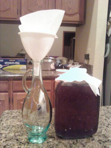 Racked off the latest wine vinegar the mother made. You might see her on teh bottom?