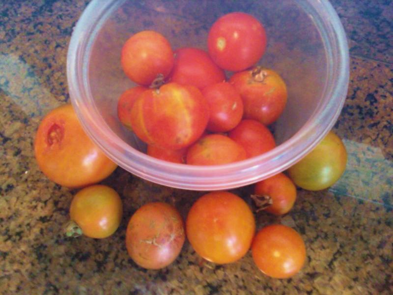 Picked the last of the tomatoes from last year's spring plants, never had them this late before and saw the first volunteer daisy blooming too.