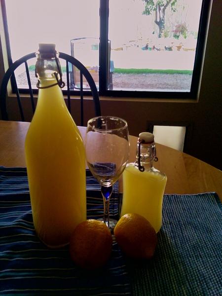 picked this year's Meyer lemons to make Limonchello Del Uuomo Morone. Here is a shot of last year's batch.