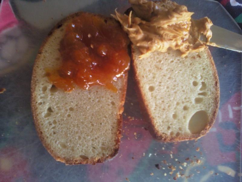 I just had to have a snack a couple of minutes ago and decided to have an apricot cinnamon jam and peanut butter on Japanese YW White Bread. It was delicious.
