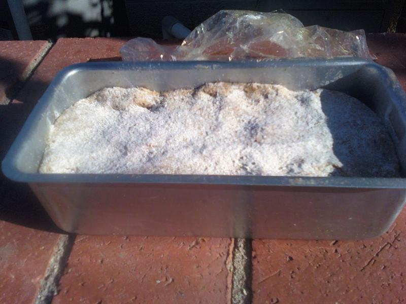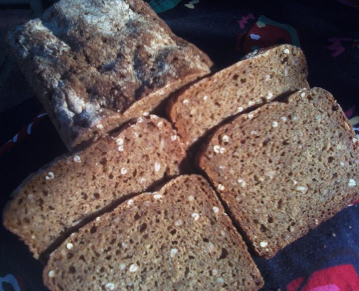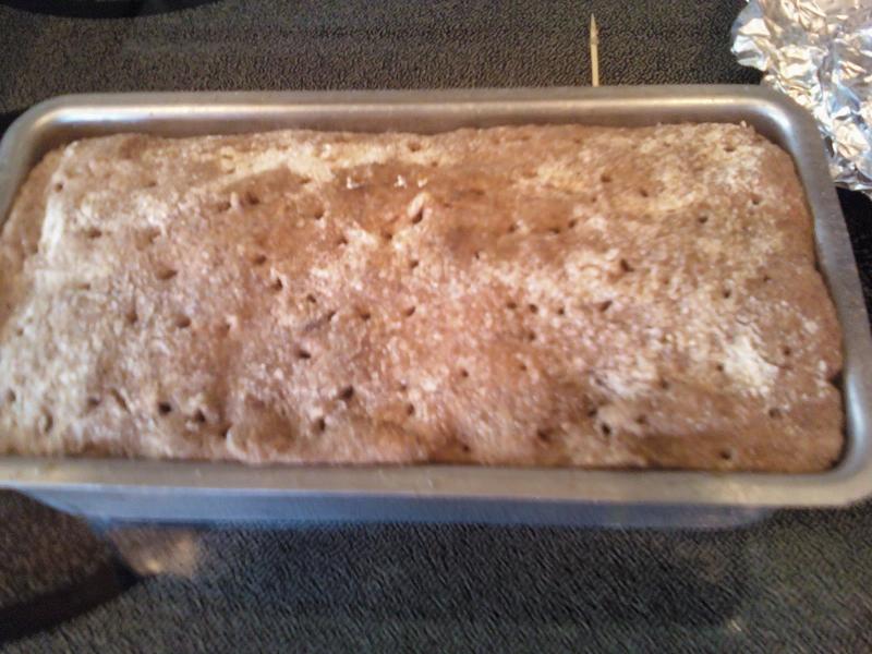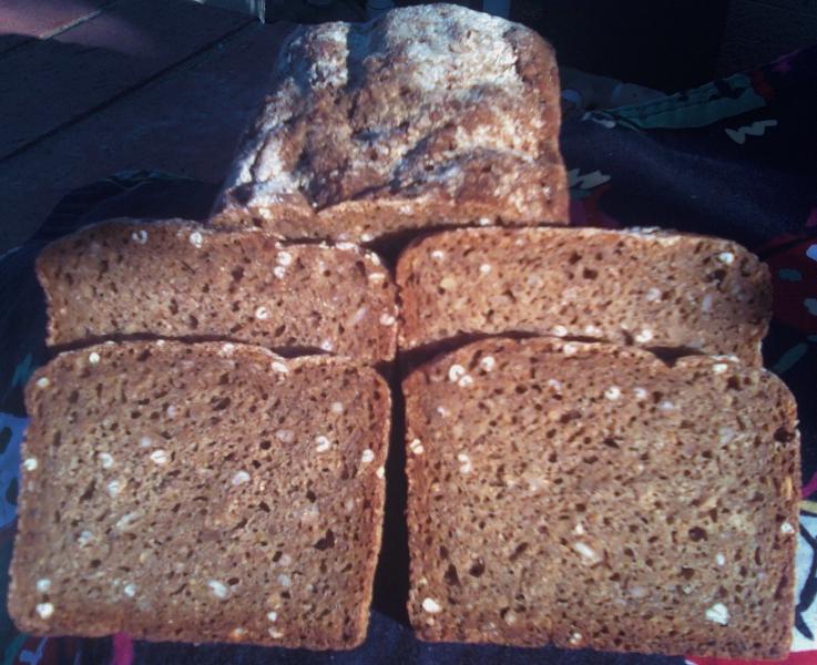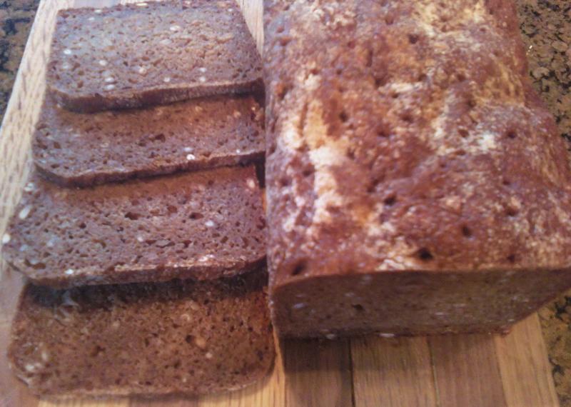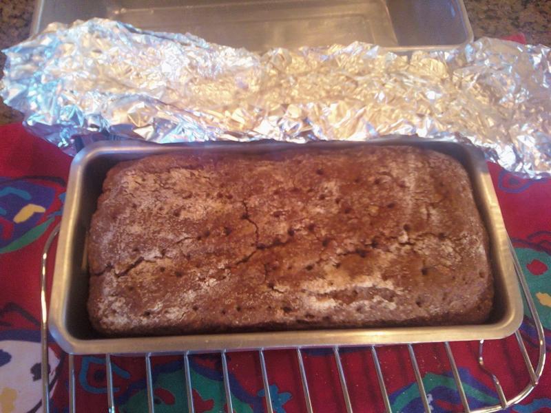 I pretty much followed Phil's post, except my pan was 4 x 2 3/8 x 8 and much smaller in height, so I baked it less time at 2 higher temp and added a lower setting that Phil didnlt use. I did 45 min at 375 F, 45 min at 300 F and 30 min at 225 F. When I checked the middle of this small loaf was 210 F so I called it done and let it sit in the oven with door ajar oven off for 10 minutes. 205 F would have been a better internal temperature for sure but you can't get everything you want. It smelled great right out of the oven, not as dark as Phil's due in part to to my rye berries not being very dark ones at all.
