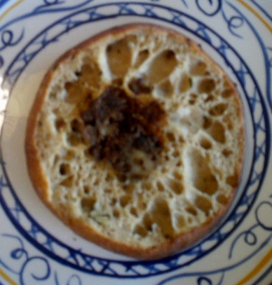 Sticking strictly to the Jewish bialy recipe by using onions, I strayed slightly from the rest of the traditional recipe and mixed it up into a Mexican / Japanese fusion sort of breakfast bread pizza thing that anyone would think is completely natural, if a little strange and weird, for the most part. OK it is real strange and weird!