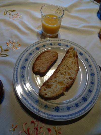 Now I really thought I had a photo of the other bread - but I can't see it! It was a boule shape, it wasn't a very dark crust, whitish crumb, quite a nice taste but to be honest, nothing special, and we tended to go back to our own favourites for breakfast...