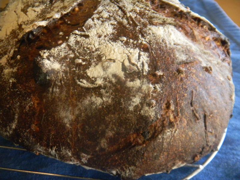 This is hilarious. It's like reading a humorous version of "Frankenstein." My smile got wider and wider as I read through all the extra ingredients that got tossed into the mix on this one. Not to mention the extra ingredients that got tossed into the baker and his faithful sidekick!!:) Quite a concoction! Varda's comment makes me laugh, too. It is a dark and fierce looking old boule, but I'm really glad in the end you have something you like the taste of!