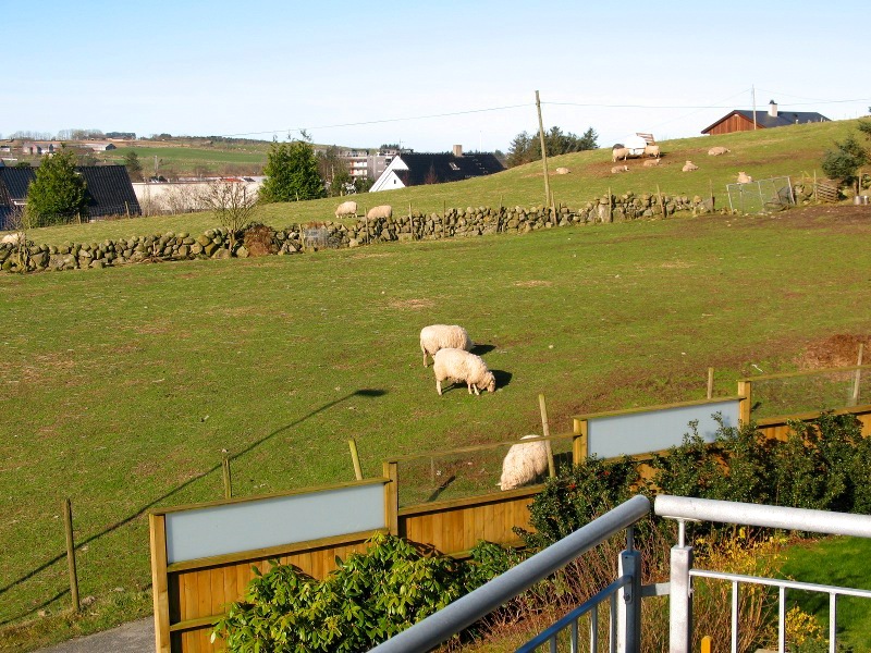I live next to a farmer, and he has kept sheep the entire winter on a small patch of grass just next to our house. By the looks of it, they're enjoying the sun just as much as us two-legged ones are. I love the view these days, here a photograph from Saturday, taken while I was waiting for a loaf to finish baking...: