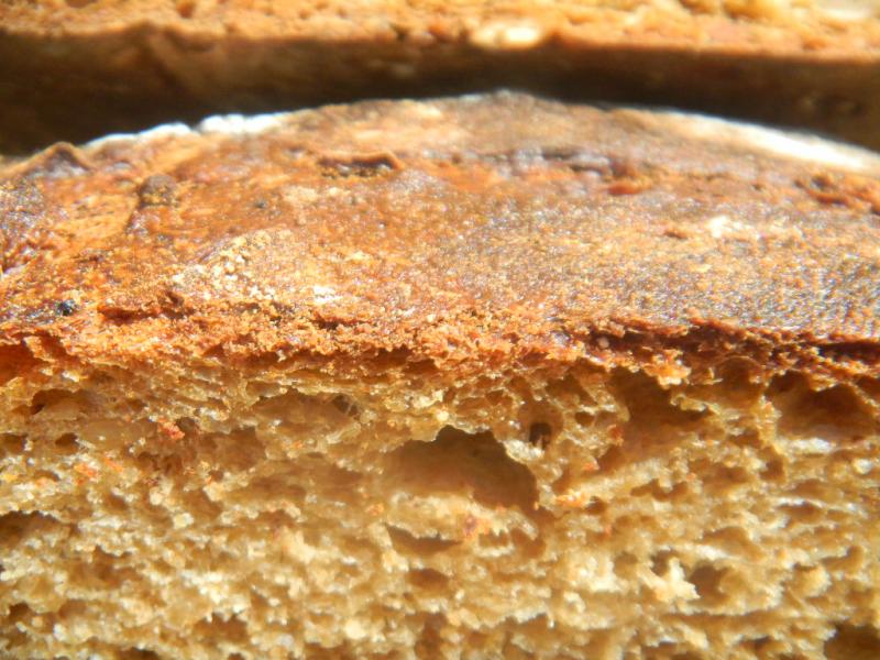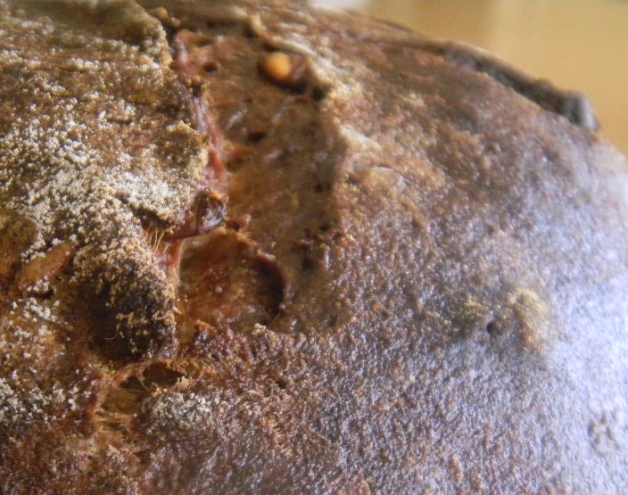 The retarded loaf came out almost identical to the non retarded one. It was perhaps a little more sour. Tasting the non retarded one from yesterday, it is more sour today and about the same sour as the retarded one just out of the oven. I would guess the retarded boule will be even more sour tomorrow too. This bread is hard to make but worth it. I never had a bread that tastes like it, the crust is dark and softens as it cools, the crumb is moist and open, for 40% whole grain bread. It is one of the best breads I have ever had, much less baked. it just looks great too with the dark crust and deep yellow crumb. Here some pix's of the retarded version 5 of Brachflachen Mehrere Vollkombrot.