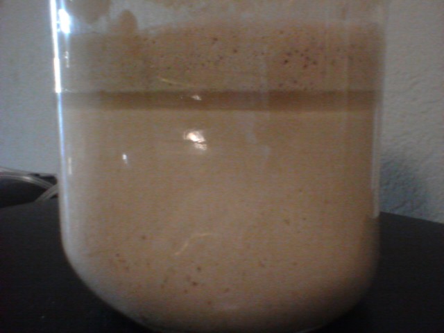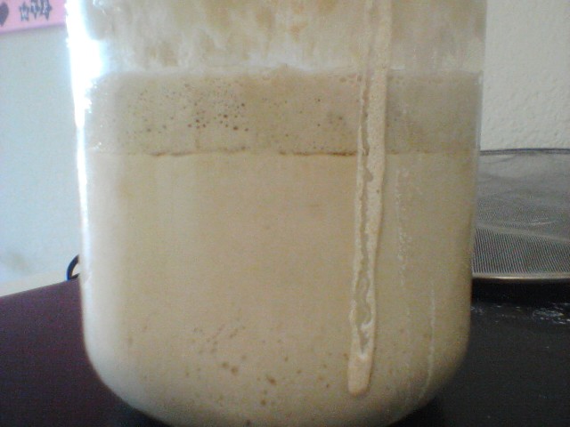 In any event, after about a week or two (when you get some real rise, or some genuine bubbling) you'll want to switch to two feedings a day at least. The alcohol smell should go away almost entirely as long as you stick to that feeding schedule. It may come back if you store your starter for a while between feedings, but isn't really anything to be concerned about.