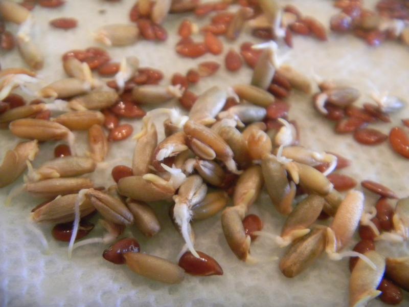 Start the rye sprouts by soaking them for 5 hours. Drain and spread over damp 2 paper towels, cover with another and then cover with plastic wrap and leave covered until needed. When needed the rye seeds will have sprouted