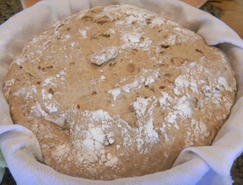 Take out of the fridge and let rest on counter to warm up for 1 ½ hours in the morning. Pre-shape into boule and let rest 10 minutes. Shape into boule making sure to stretch the skin tight by dragging boule across a non floured work surface. Place seam side up in cloth lined and floured basket (I use half rice flour and half AP). Pinch seams closed and flour top. Place in a trash can liner and let rise until it nearly doubles and passes the poke test. About 3 hours. At the 2 hour mark: