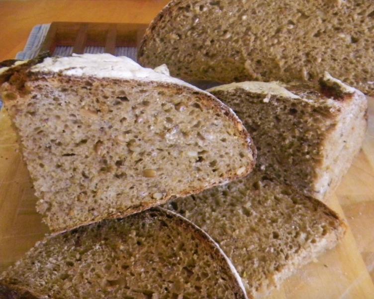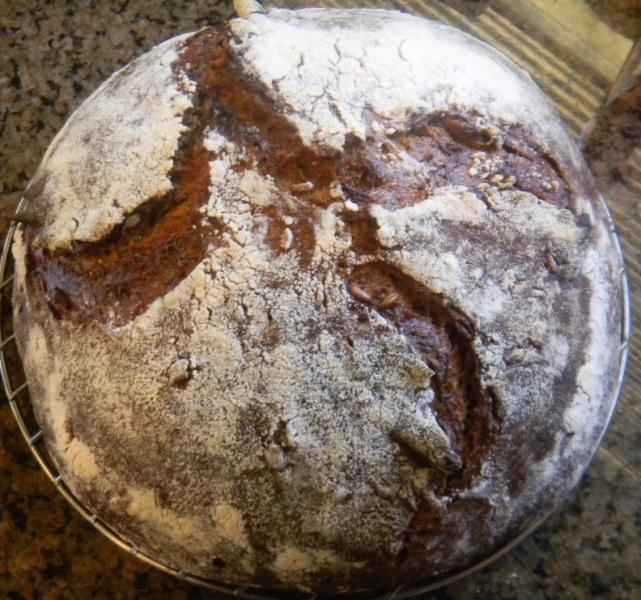 After baking several white, or nearly so, YW and SD breads in French styles, I wanted to go back to my favorite breads to make and eat (and re-stock the freezer) - rye based multi grain SD breads that were at least 50% whole grains with rye sprouts, rye scald (with red rye malt), some Borodinski altus, some caraway, flax and pepitas (pumpkin) seeds.
